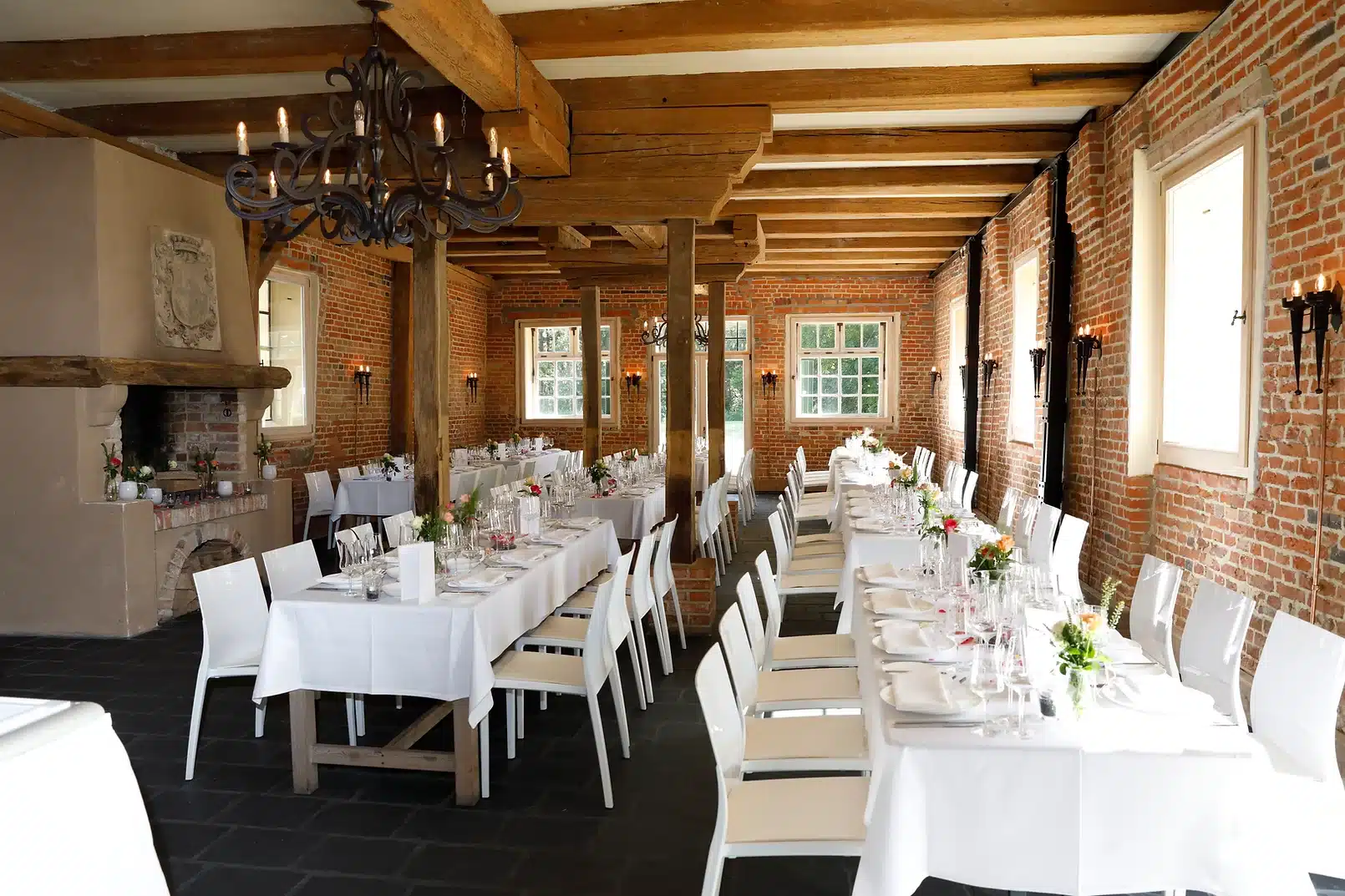 Die Stellmacherei bietet Raum für Ihr Fest auf zwei Ebenen, die ebenfalls einzeln oder gemeinsam verfügbar sind. Das Obergeschoss ist für Veranstaltungen mit einer Sitzkapazität bis zu 200 Personen ausgelegt, zusätzlich ist im Untergeschoss Platz für 80 Personen. Ein Fahrstuhl bietet einen barrierefreien und bequemen Zugang, eine voll ausgestattete Cateringküche ermöglicht reibungslose Abläufe bei der Bewirtung Ihrer Gäste, WCs befinden sich auf beiden Etagen.