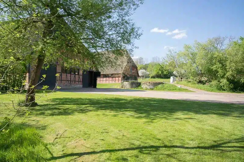 Die historische Scheune mit Reetdach ist der Ort für größere Feiern mit bis zu 400 Gästen, die gemeinsam einen besonderen Anlass feiern möchten. Die weit zu öffnenden Tore sowie der Vorplatz bieten hier viele Gestaltungsmöglichkeiten für Veranstaltungen bei jedem Wetter.